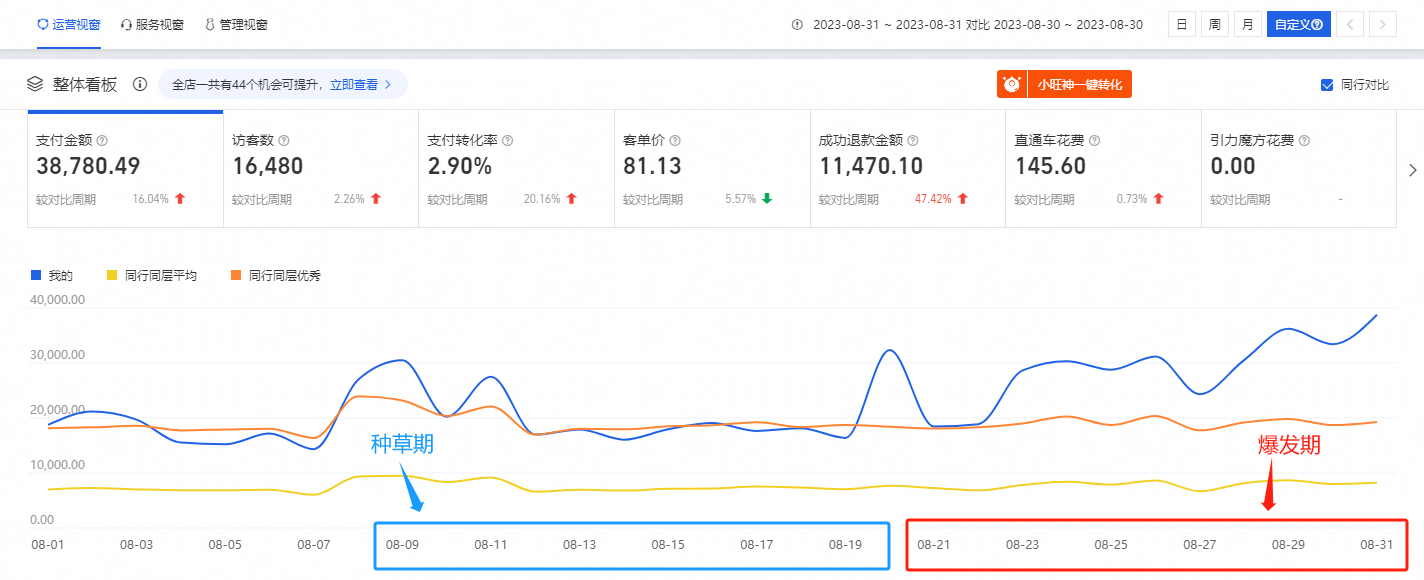 2、開始后,使用萬象臺的貨品加速以及活動加速來完成店鋪前期的種草收割;