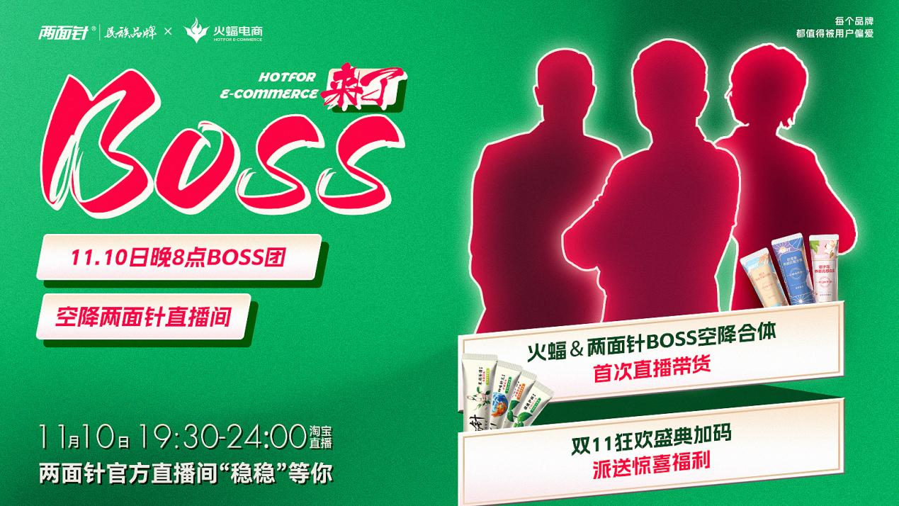 作為擁有42年歷史的經典國貨品牌,兩面針也是早早布局雙十一大促。11月10日晚8點,兩面針與火蝠電商BOSS將組團空降兩面針淘寶直播間,用多重驚喜豪禮引爆雙十一狂歡盛典。